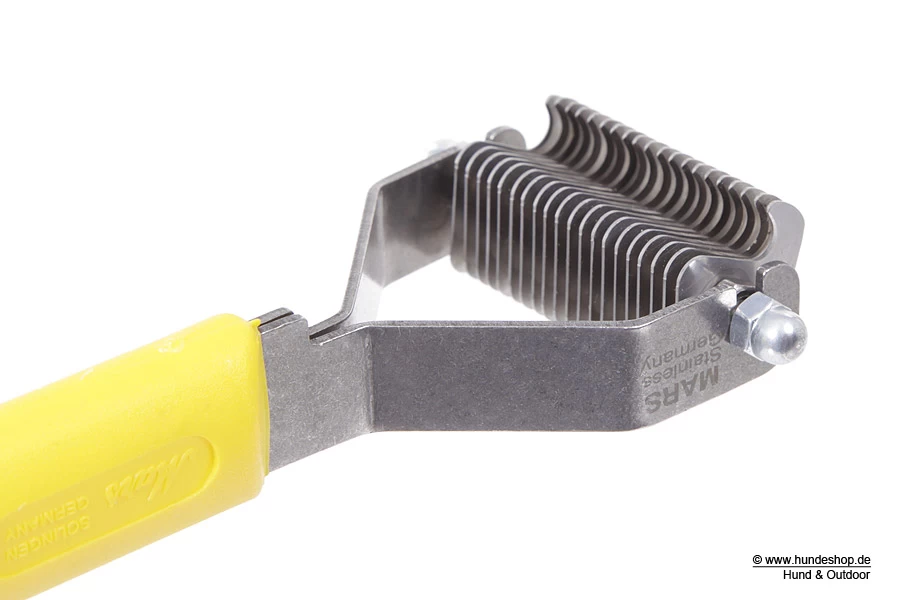 Der Mars Coat King Striegel mit rostfreien, gehärteten Edelstahlklingen ist ein Alleskönner. Mit dem Mars Coat King holst Du 99 % der toten Haare aus dem Fell deines Hundes.