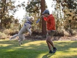 Du kannst deinen Hund mit dem Ruffwear Front Range™ entweder herkömmlich am D-Ring der Rückenplatte anleinen oder am verstärkten Nylongurt im Brustbereich z.B. beim Training.
