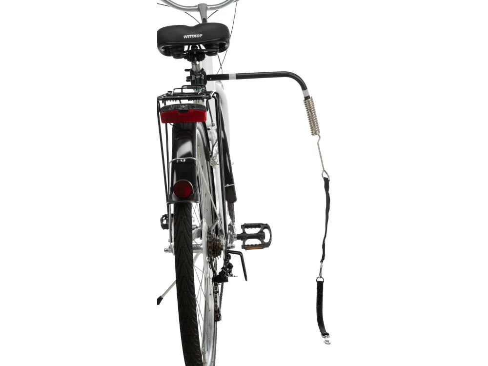 Der Abstandhalter sorgt dafür, dass dein Hund nicht in das Fahhrad laufen kann. Die Spiralfeder fängt ruckartige Bewegungen deines Hundes sehr komfortabel ab und der Kurzführer stellt die Verbindung zwischen deinem Hund und dem Biker Set her.