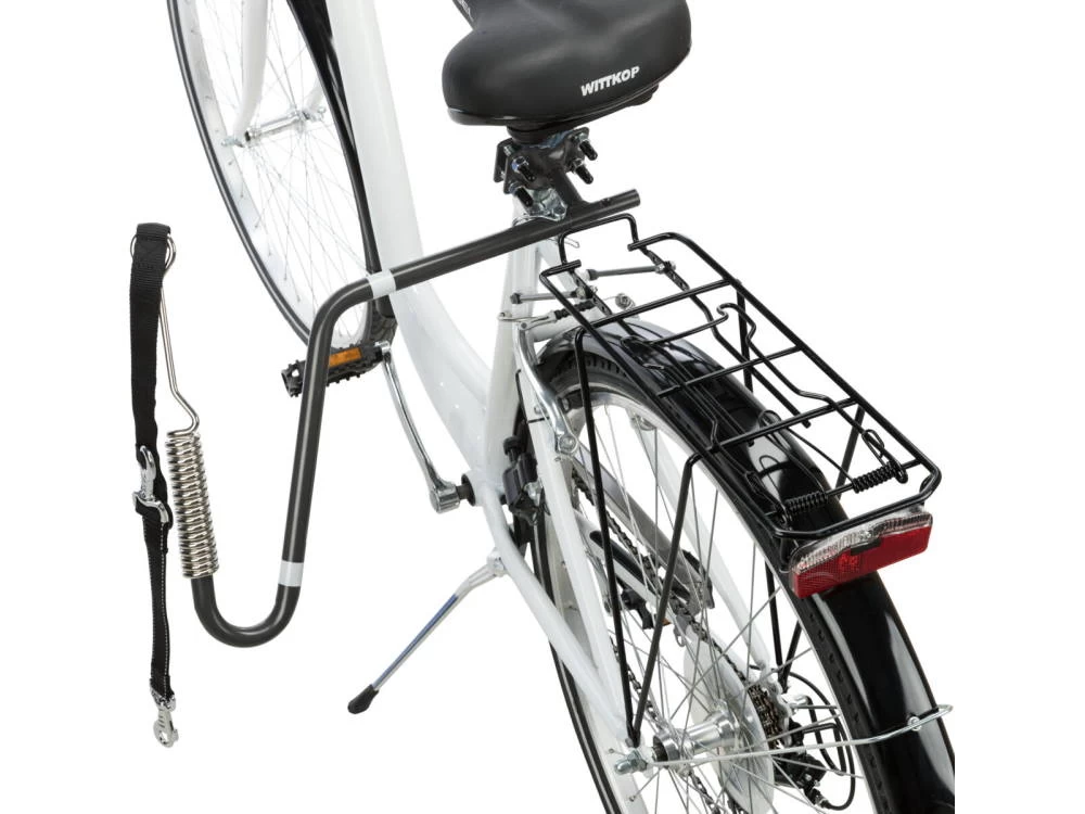 - Lieferumfang: Abstandhalter mit Befestigung fĂĽr Sattelstange, Anleinsystem, Spiralfeder, Anleitung