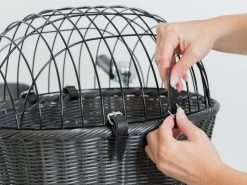 Damit dein kleiner Hund immer dabei sein kann, auch wenn du mit dem Fahrrad unterwegs bist, ist dieser Fahrrad-Korb für die Lenkstange ideal. Sicher befestigt lässt sich der Korb auch mit einem Hund bis zu 5 kg gut ausbalancieren. Das Schutzgitter verhindert, dass dein Hund herausspringt, ein mitgeliefertes kuscheliges Kissen mit Plüschbezug federt die Bewegungen des Fahrrads ab. Der Fahrradkorb lässt sich einfach ein- und aushängen.